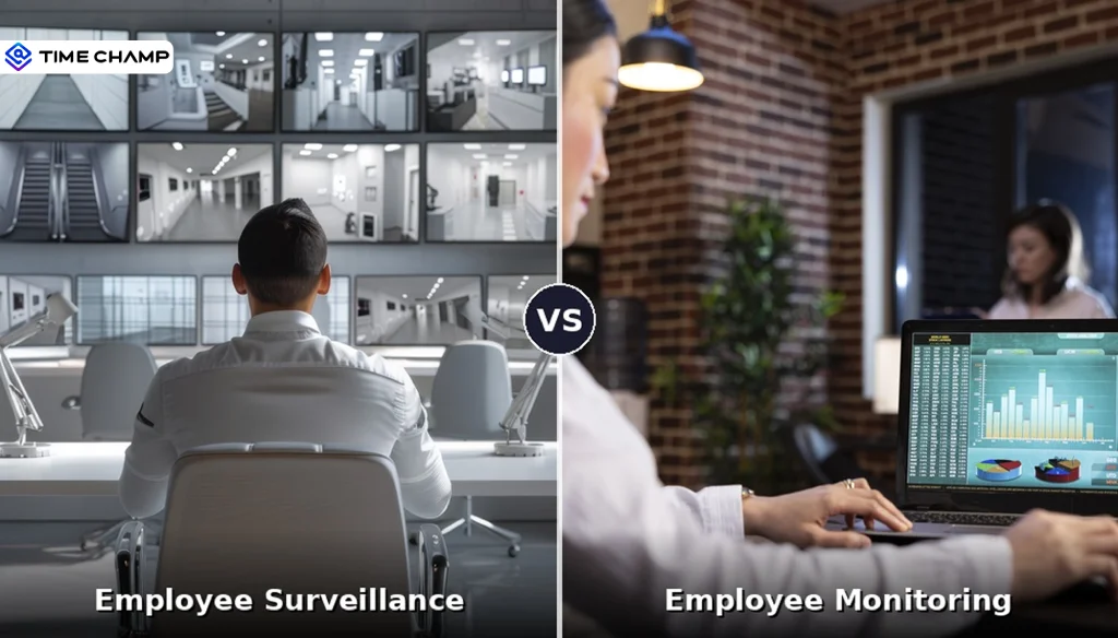 Employee surveillance vs employee monitoring: see the 8 key differences, how surveillance damages morale, and when transparent monitoring builds trust instead.
