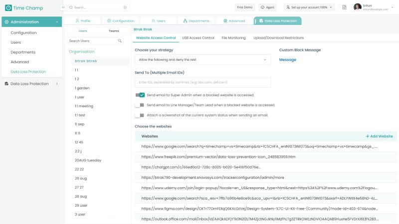 If you’re seeking an effective way to control internet access and block unwanted websites, Time Champ offers a seamless solution. This feature allows you to keep your workforce free from distractions and potential security risks, giving you control over which websites are accessible in the workplace and teams. With Time Champ’s easy setup, you can create a more productive and secure online environment. Here is how you can block a website with Time Champ quickly: