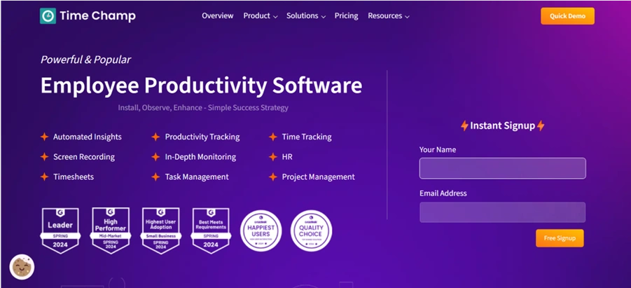 Time Champ is a feature-rich alternative to We360.ai that will provide key insights into employee productivity, easier workflow management. Its real-time tracking and flexible monitoring tools make it easy for businesses to optimize performance without micromanaging, thus perfect for remote or in-office teams.