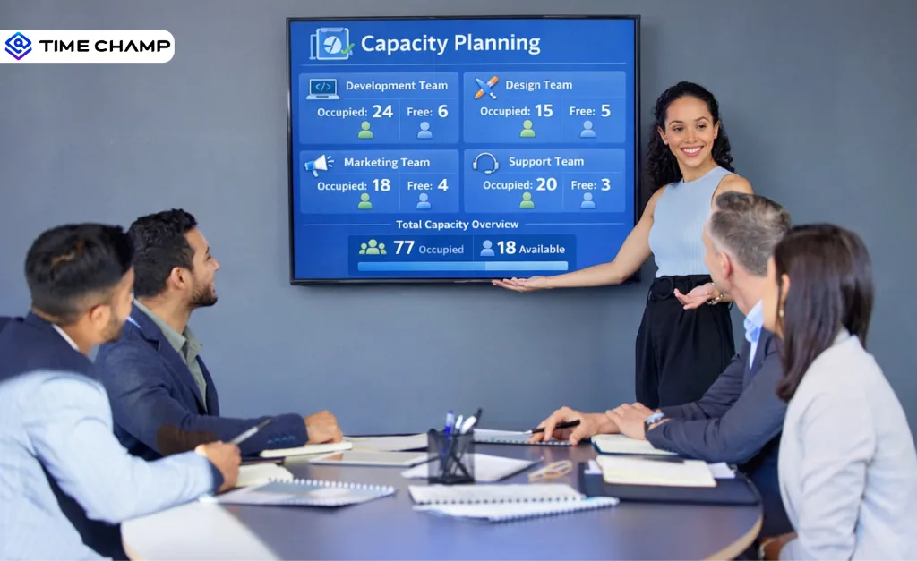 A workforce intelligence platform like Time Champ gives you a clear view of your team’s capacity, availability, and future resource needs. It provides real-time dashboards and predictive insights to help plan workloads, balance resources across projects, and make informed decisions. This ensures that your team works efficiently, avoids bottlenecks, and that projects proceed smoothly without overloading anyone.