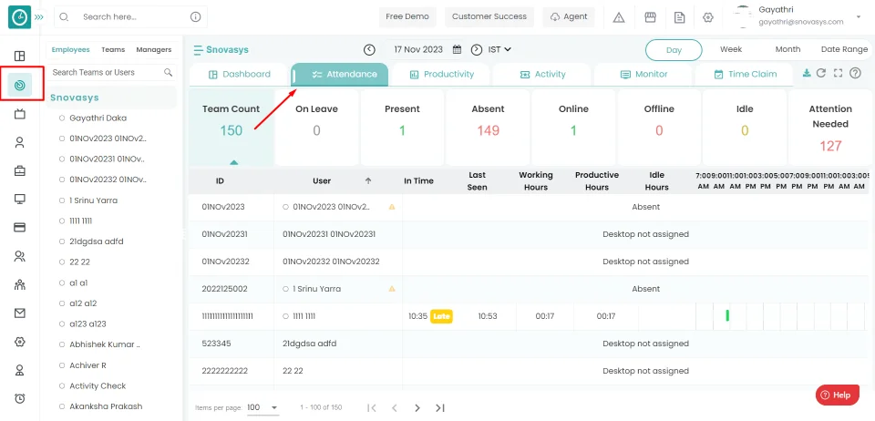 You can now view the activity of an employee in attendance.
