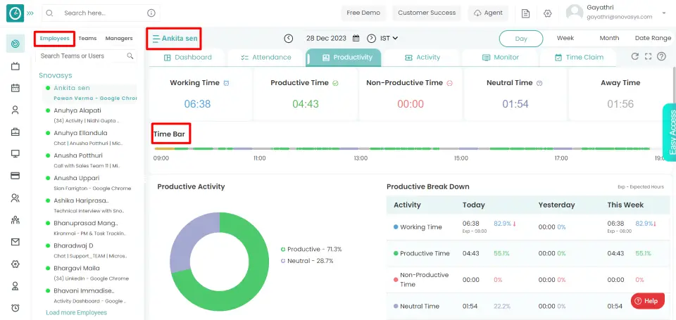You can now view the activity of an employee in Productivity.