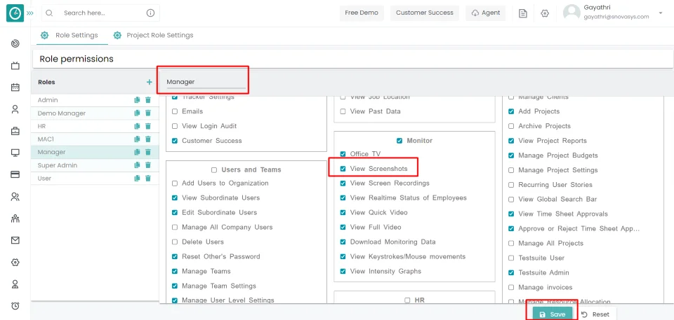 then select the roles you want to grant permissions to configure and check them.Keystrokes and mouse movements from Monitor Module,