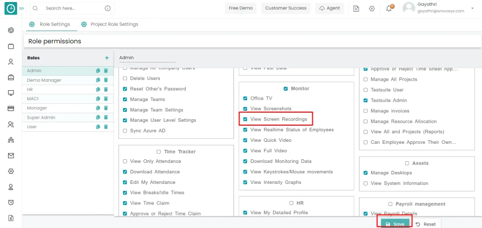 then select the roles for what you must give the permissions to configure and check them.View Screen Recordings